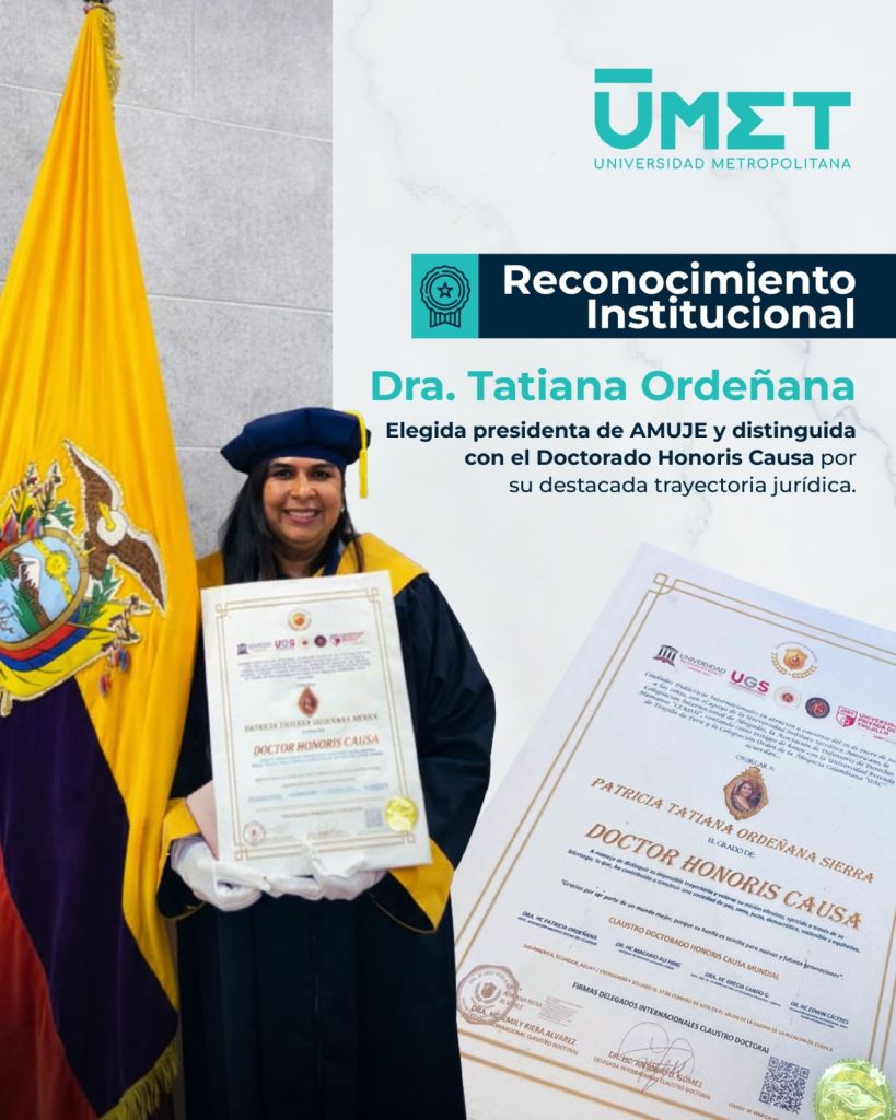 La Universidad Metropolitana celebra con orgullo los importantes reconocimientos alcanzados por la Dra. Tatiana Ordeñana, destacada profesional vinculada a nuestra